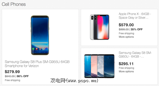Apple和Samsung的热门手机型号可以在eBay上找到,以及一些更便宜的品牌,例如华为和LG。