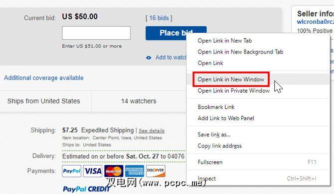 然后,右键单击“ 放置出价"按钮,然后在新窗口。