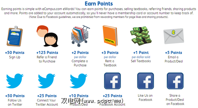 您是否渴望在教科书上节省更多?然后,“ eWards"程序适合您。该计划的工作原理是在购物时为您提供积分,推荐朋友并在他们的社交媒体平台上关注eCampus。