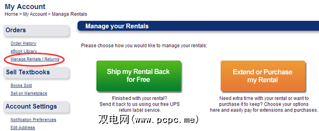 在帐户页面上,您可以轻松打印退货标签或延长租赁时间。
