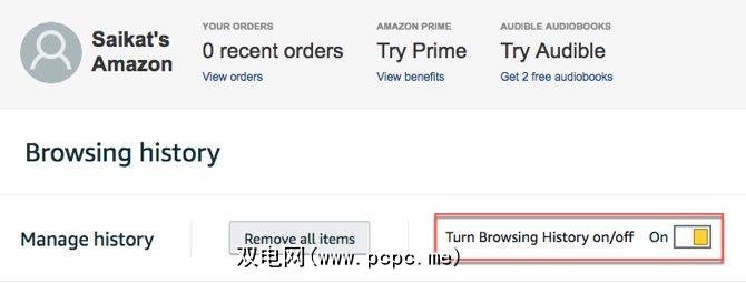 关闭浏览历史记录。当您希望亚马逊停止记录您单击的每个产品时:<