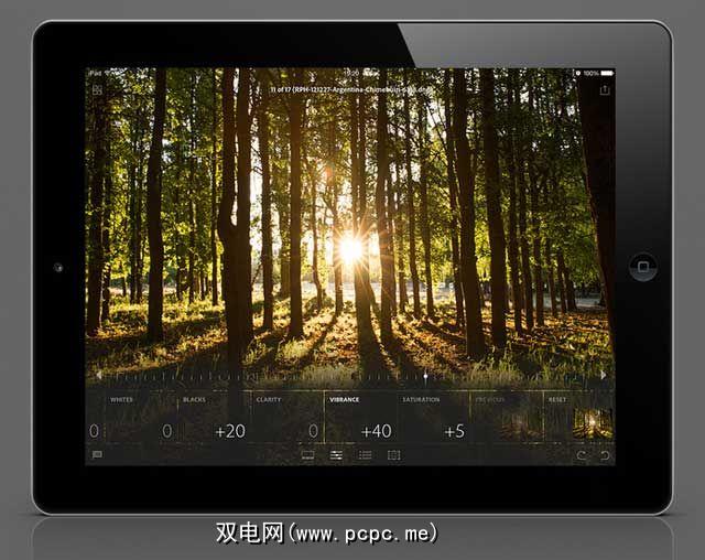 您还可以直接从iPad相机胶卷导入和编辑图像。 Lightroom for mobile包含基本(但功能强大)的编辑工具和颜色预设。由于它是一个配套应用程序,因此缺少更高级的工具,例如自定义预设,微调的锐化功能等。可以与iOS服务(例如Messages,Mail,Twitter,Facebook,Flickr和AirDrop)共享照片。