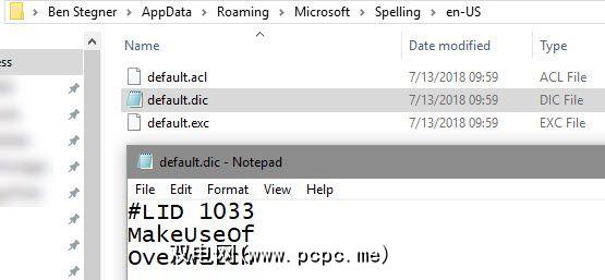 %APPDATA%\Microsoft\Spelling然后,您会在设备上看到语言/区域组合的列表,例如 zh-CN 和 en-CA 。选择您的主要文件,您将看到三个文件。右键点击 default.dic ,然后选择使用记事本或其他文本编辑器打开。