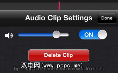 对视频片段中的音频也可以执行相同的操作。轻按两下剪辑以调整音量或将其全部静音。对于某些家庭视频,如果悲伤的事情与制作无关,我想降低视频剪辑的音频,然后增加背景音乐的音量。