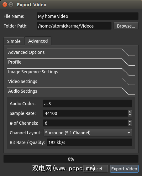 要导出,请保存,然后转到文件>导出视频。点击导出,然后选择要使用的配置文件,然后选择目标位置和文件名。还提供高级导出选项。完成后,点击导出视频。
