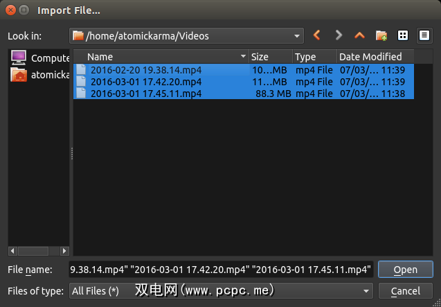 您应该已经准备了一些合适的视频剪辑。通过点击工具栏上的绿色 + 符号来导入它们。这将打开一个对话框,供您选择要导入的文件。可以导入最常见的视频,音频和图像文件(OpenShot 2.0可以处理幻灯片,包括Ken Burns效果。
