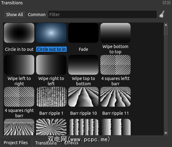 过渡—也可以在两个剪辑之间添加擦拭和其他华丽的混合。只需将两个剪辑放到时间线上,然后使用过渡框中的三角形作为定位指导,将过渡拖动到适当位置即可。