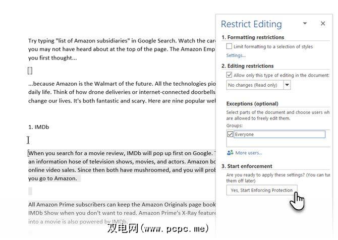 当您不想独自工作时,Microsoft Word 2016使其易于协作。即使那样,您可能也不想允许任何人对文档进行任何更改。您可以启用文字保护,并以只读文档的形式共享它们,或仅将其打开以供注释。