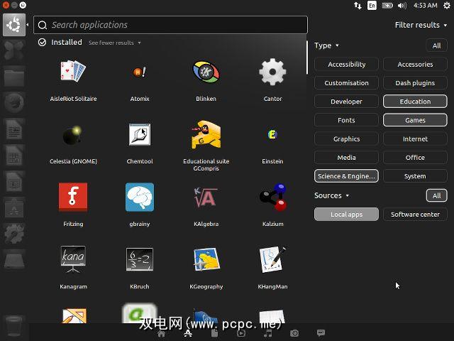 当然,如果找不到它们,那么所有这些应用程序都不会做任何事情,而Linux新手很可能不知道所有这些应用程序都叫什么。拥有一个良好的菜单结构,使找到相关应用程序变得容易是必不可少的,而UberStudent的工作要做得更好。在这方面,它本身存在设计缺陷,而不是理想的解决方案。 Unity只能按主要类别(例如,教育,数学与科学和游戏)缩小范围,而UberStudent可以提供更好的组织级别。