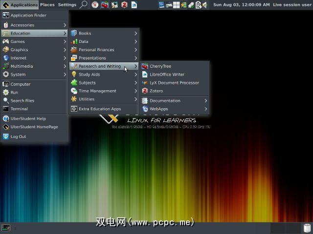 这两个发行版都提供了很多开箱即用的教育程序。它以下载大小显示,UberStudent和Edubuntu分别为2.8 GB和3.1 GB。滚动浏览所有内容,我注意到Edubuntu预装了比UberStudent更多的教育程序。实际上,UberStudent甚至会使用指向某些网络应用程序的链接,就像它们是实际程序一样。我想这对某些人可能有用,但我个人认为这是坏事而不是好事。