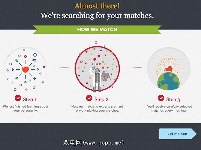 这就是为什么eHarmony会以一份冗长的问卷开头的原因。约会网站会获取您的答案并将其与其他用户进行匹配,以找到最合适的答案。