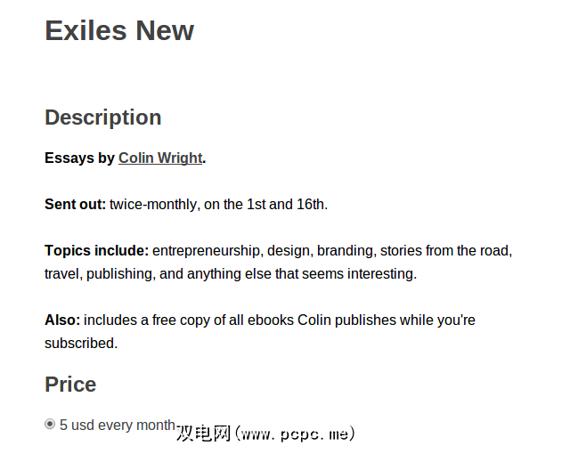确定新闻稿的名称,附带的简短说明和价格标签,您就可以开始了。很好,尽管不是强制性的,但至少有一个更新可以在订阅者注册后立即发送给订阅者。之后,您可以按预设的定期间隔向他们发送内容。处理完首笔付款后,您的阅读器将按月,按季度或按年付费,这完全取决于您。他们可以随时取消。