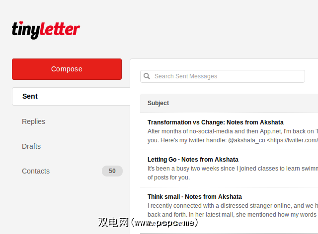 如果您喜欢干净简约的新闻通讯的想法,TinyLetter就是您的选择。它的简洁方法为您与读者的互动增添了温暖,个性化的氛围-在我们人满为患且经常是非个人化的网站空间中脱颖而出。