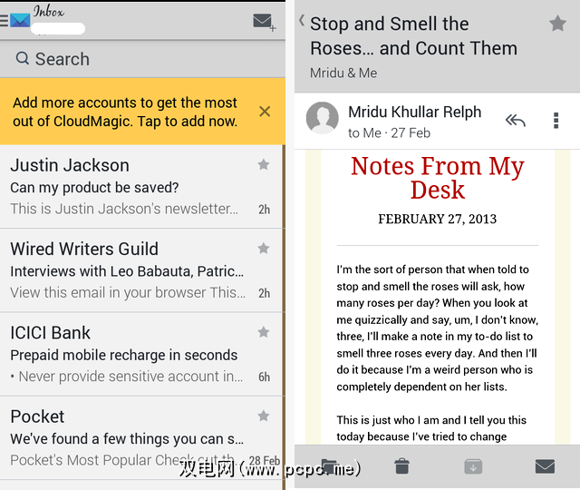 通过基于电子邮件和基于联系人的搜索,时间搜索结果以及自动完成功能,全面的搜索功能是CloudMagic的主要卖点。该应用的标语“ 具有神奇搜索功能的电子邮件应用"与之呼应。 当您可以通过简单的查询检索任意一封电子邮件时,为什么要花时间组织电子邮件?