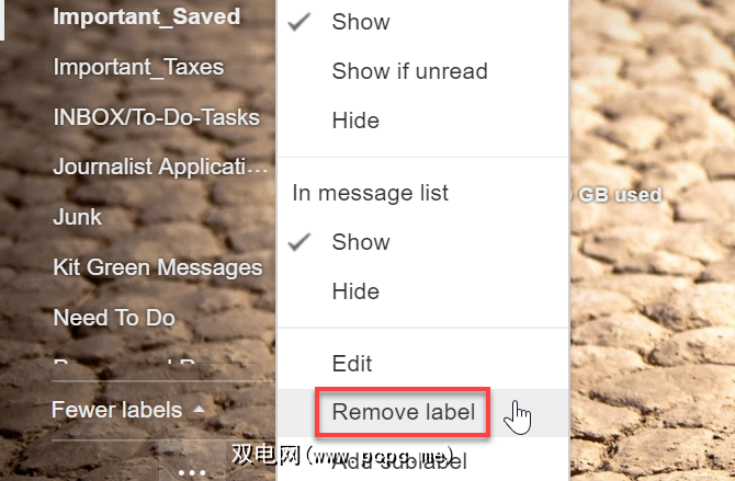 清除完所有电子邮件后,别忘了删除所有那些旧标签。只需单击标签名称右侧的下拉菜单,然后从列表中选择删除标签。