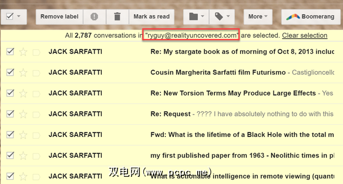 每个搜索一次都可以查找超过100封电子邮件。只需不断清除它们即可。