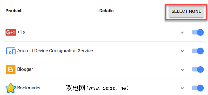 向下滚动到您的帐户列表,然后点击不选择以取消选择所有帐户。