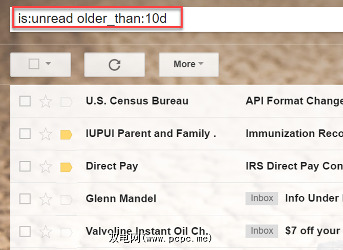 您可以通过搜索所有超过10天的未读电子邮件来快速清除这些电子邮件。