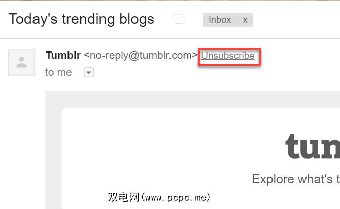 每天都找到它们。打开电子邮件,然后在电子邮件顶部或底部附近找到退订链接。