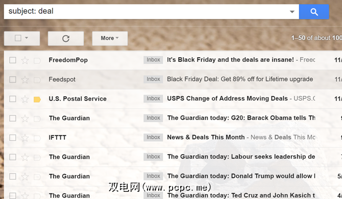 另一种减少电子邮件剩余列表的方法是:搜索典型的垃圾邮件或促销主题t行。您可以通过键入诸如“主题:交易",“主题:赠品"或“主题:最后机会"之类的搜索来完成此操作。