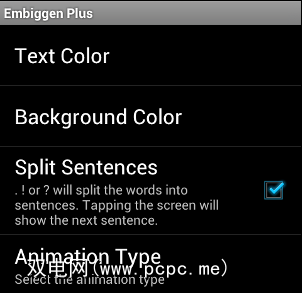 Embiggen Plus可让您更改文本和背景颜色,以及选择一个新短语时要使用的动画样式: