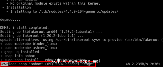 snap install --classic anbox-installer && anbox-installer基于终端的安装程序脚本将为您获取所有内容。首先执行一些管理功能,例如添加新的软件存储库和安装必备软件。然后,它将下载Anbox Snap软件包(如下图所示)并安装它。