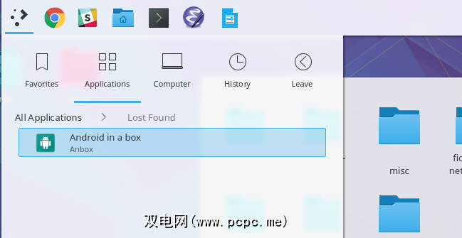 安装Anbox后,您可以从主菜单启动它。它显示在我的“失物招领处"类别中,但应与文本搜索一起出现。片刻之后,屏幕上将弹出“ Anbox应用程序管理器"。