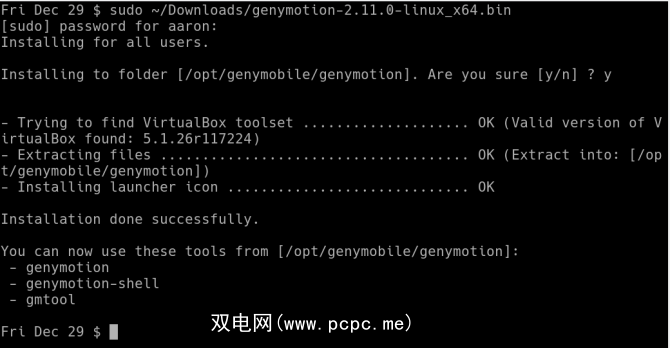 完成后,请确保您赋予BIN文件可执行特权,然后以root身份运行它(如
