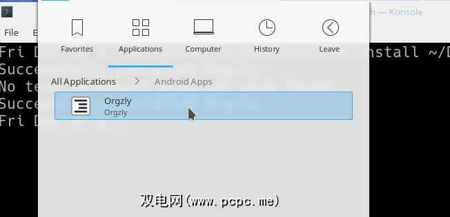 sudo apt install android-tools-adb现在,您可以安装一个方便使用APK文件的应用。以下命令将安装Orgzly(做笔记和待办事项的应用程序):