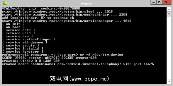启动Windroy之后,您首先,它会弹出一个看起来与Windows命令提示符非常相似的窗口。该窗口充当模拟器中正在发生的事情的日志(它将在另一个窗口中弹出)。此处报告了所有错误和其他重要事件,您需要保持此窗口打开。