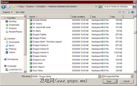 如果进行了我建议的文件关联之前,您也可以浏览Windows资源管理器中的文件夹,然后双击该文件。它会自动在Nestopia中加载并启动。