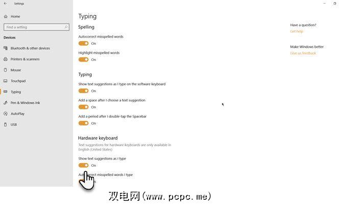 幸运的是,可以轻松地在硬件和软件键盘上启用或禁用Windows 10中的文本建议。