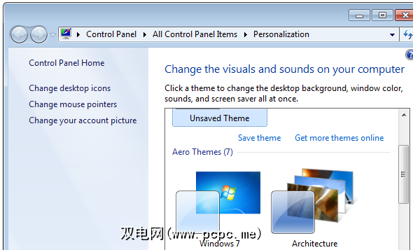 在Aero主题下,只需单击您喜欢的任何主题。我使用了默认的Windows 7,不久之后,瞧瞧: