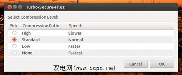 您甚至可以选择是否要压缩以及要压缩多少。压缩程度越高,文件越小,打开时间越长。但是,压缩可能是一件好事,尤其是当您必须传输加密文件时。进行选择,然后单击确定。