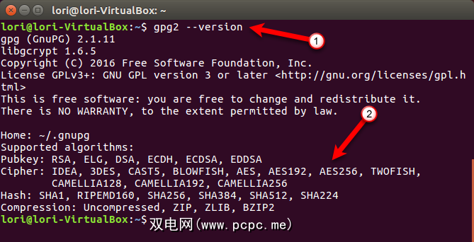 gpg2 --version列表中的strong> AES 密码算法是 AES128 。