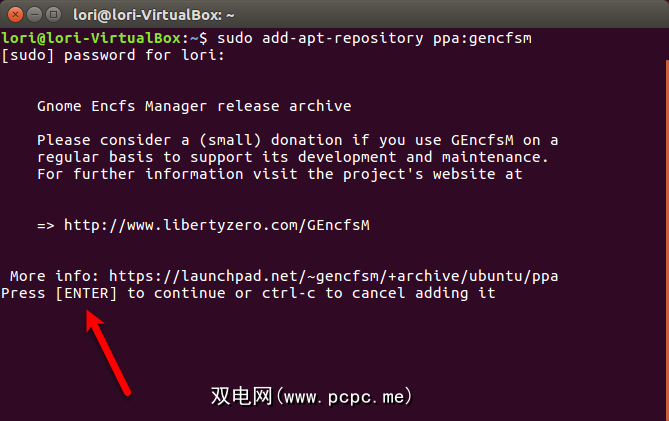 要安装GencfsM,请按 Ctrl + Alt + T 打开“终端"窗口。然后,运行以下命令以添加GencfsM PPA。