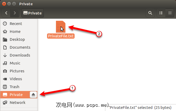 创建加密文件夹后,该文件将自动安装。您会在文件管理器左侧面板的位置列表中看到该文件。在其中创建文件或将文件和文件夹复制或移动到该位置以保护它们。