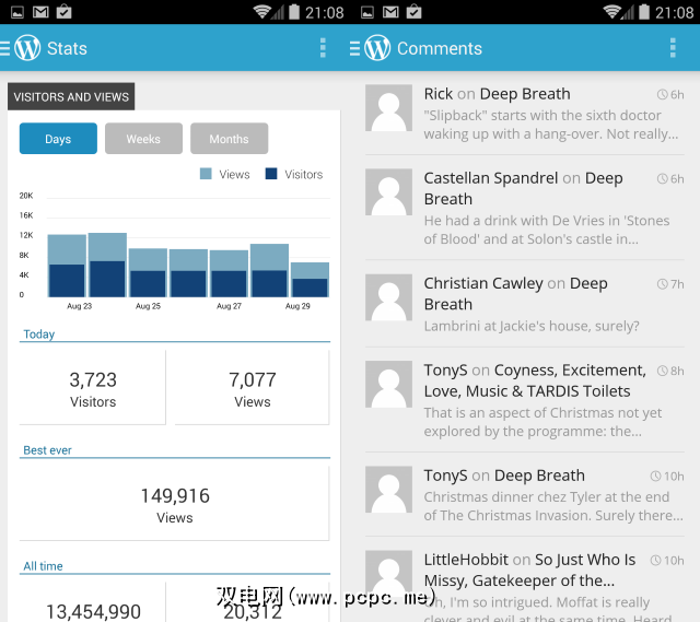 您正在运行WordPress博客,因此,您当然需要安装官方的WordPress应用程序(几种在Android上写博客的方法之一,而且可以说是最好的)。设置您的帐户将需要您输入博客URL以及您的帐户用户名和密码。稍后,您将能够创建新帖子,查看统计信息并发表评论。最后一点也可以节省时间-如果您外出旅行时需要进行任何调整,则阅读和批准或拒绝它的时间不会超过30秒。