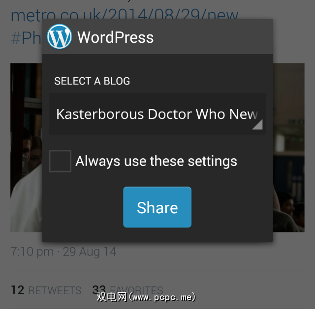 一旦关注了足够多的帐户有用,然后可以将Twitter用作新闻来源。无论您使用的是官方应用程序还是多种替代方法之一,都可以使用共享按钮将推文直接共享到WordPress应用程序中,而推文中包含的任何链接都可以在首选的Android浏览器中打开并共享到WordPress中