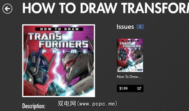 购买漫画很容易,然而。首先执行搜索(使用Windows 8超级按钮)或浏览应用程序主页上正在宣传的项目。