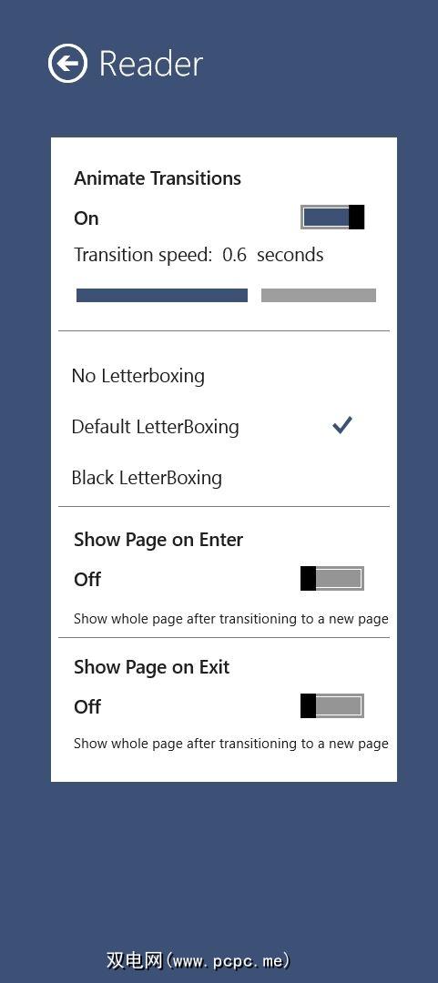 在页面之间切换(通常被接受)阅读漫画的方法)是通过在平板电脑上点击屏幕边缘或单击鼠标来完成的。您可以打开应用程序设置(通过超级按钮菜单)来调整过渡,信箱以及页面是否在向导视图中显示。