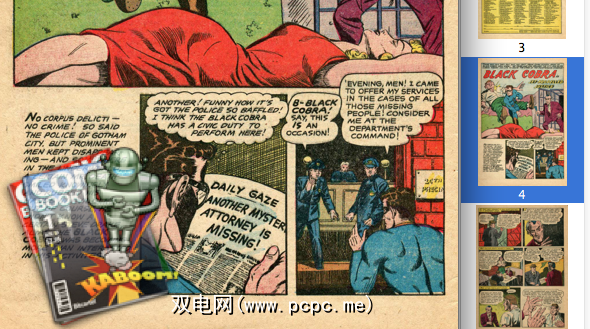 ComicBookLover带有内部漫画阅读器。这是完全付费版本的主要区别;免费版ComicBookLover会在每页的左下角嵌入水印,如下所示。不用担心您最常可以阅读水印下的内容,或使用缩放按钮将其完全移出覆盖的文本。
