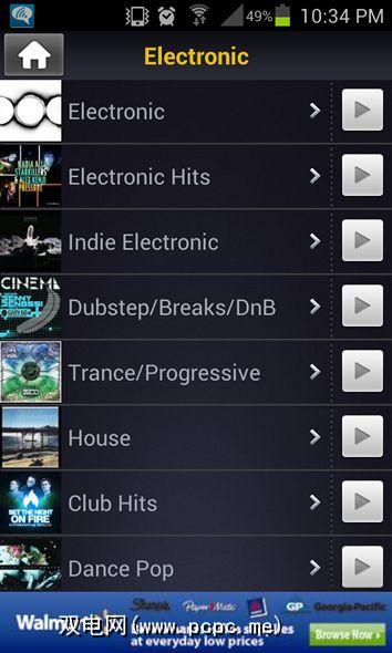 在首次启动时,您会找到一些指向普通Slacker Radio资源的快速链接,包括搜索功能,所有Slacker Radio电台的组织列表,电台/播放列表的创建,喜欢的歌曲以及特殊内容,例如ABC和ESPN。对于纯音乐,您很可能希望浏览Slacker的电台集合。
