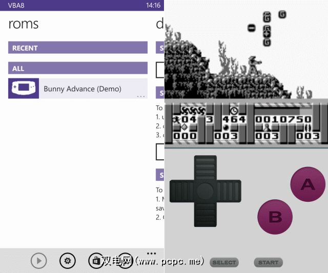 此应用程序的UI(提供试用版)旨在复制Game Boy掌上游戏机,而ROM管理方面,您可以从SD卡或SkyDrive导入ROM。游戏状态也可以保存和恢复。