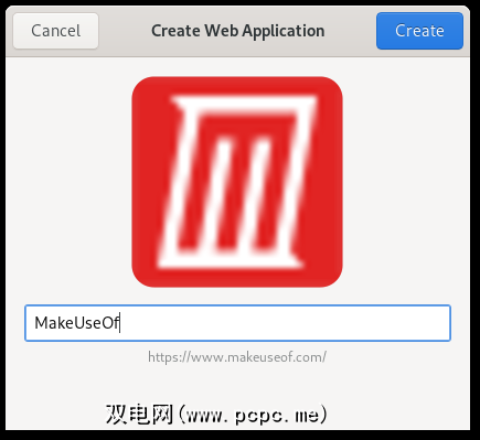 将出现一个新窗口,要求您命名该Web应用程序,并使用当前的网址自动为您建议名称。单击创建按钮后,现在可以在应用启动器中与其他桌面应用程序一起找到该Web应用程序。
