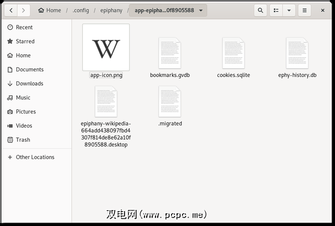 每个Web应用程序都有其自己的文件夹,该文件夹显示为“ app-epiphany",后跟该Web应用程序的名称和一串数字。在此文件夹中,您会找到一个名为“ app-icon.png"的图像。将其替换为您选择的一个,并确保保留名称。