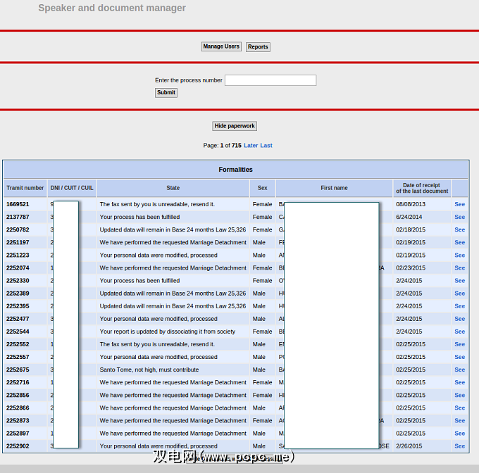 令人震惊的是,允许您查看,编辑和删除100多名阿根廷Equifax员工的用户名和密码。在每种情况下,均发现明文密码与员工的用户名相同。如果还不够严重,网站上会有一个区域,其中有715页的详细报告涉及Equifax记录的每个投诉或纠纷。这些信息包括DNI(相当于阿根廷的SSN),可容纳14,000多人,而且都是纯文本格式。在与KrebsOnSecurity联系后,Equifax迅速将网站下线,目前正在调查其最新的安全漏洞。