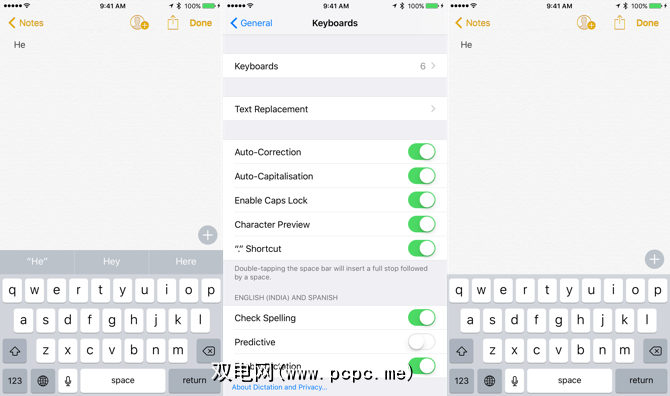 除了自动更正功能外,iOS键盘还具有Apple称为QuickType的预测性文字。它显示在键盘顶部。要禁用此功能,请转到设置>常规>键盘,然后禁用预测性。
