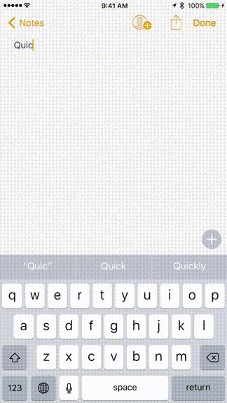 如果您使用的是iPhone 6s或更高版本,只需在键盘上的任意位置更深地按一下(以启用3D触摸),然后观察键盘转换成临时触控板即可。现在,当您左右左右移动手指时,光标也会随之移动。