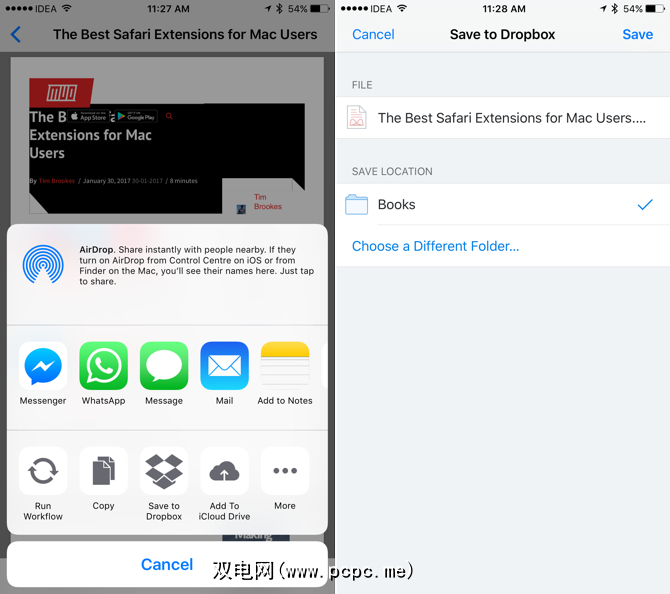 与Mac上的Safari不同,iOS对应版本不支持浏览器扩展。但是从iOS 8开始,应用程序就可以捆绑自己的扩展程序,这些扩展程序可以插入整个共享工作表系统。